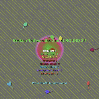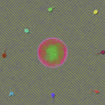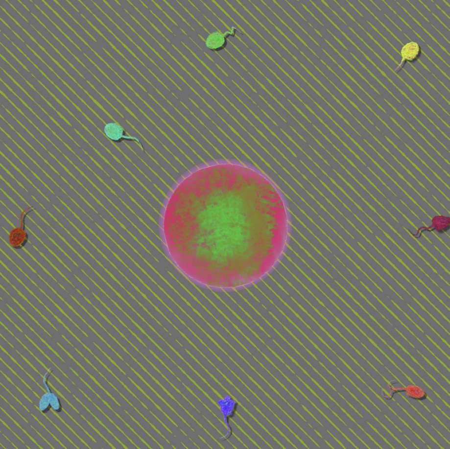 Yes, 8 beautiful sperm cells of different morphologies attack a lovely egg, but only the second one wins.